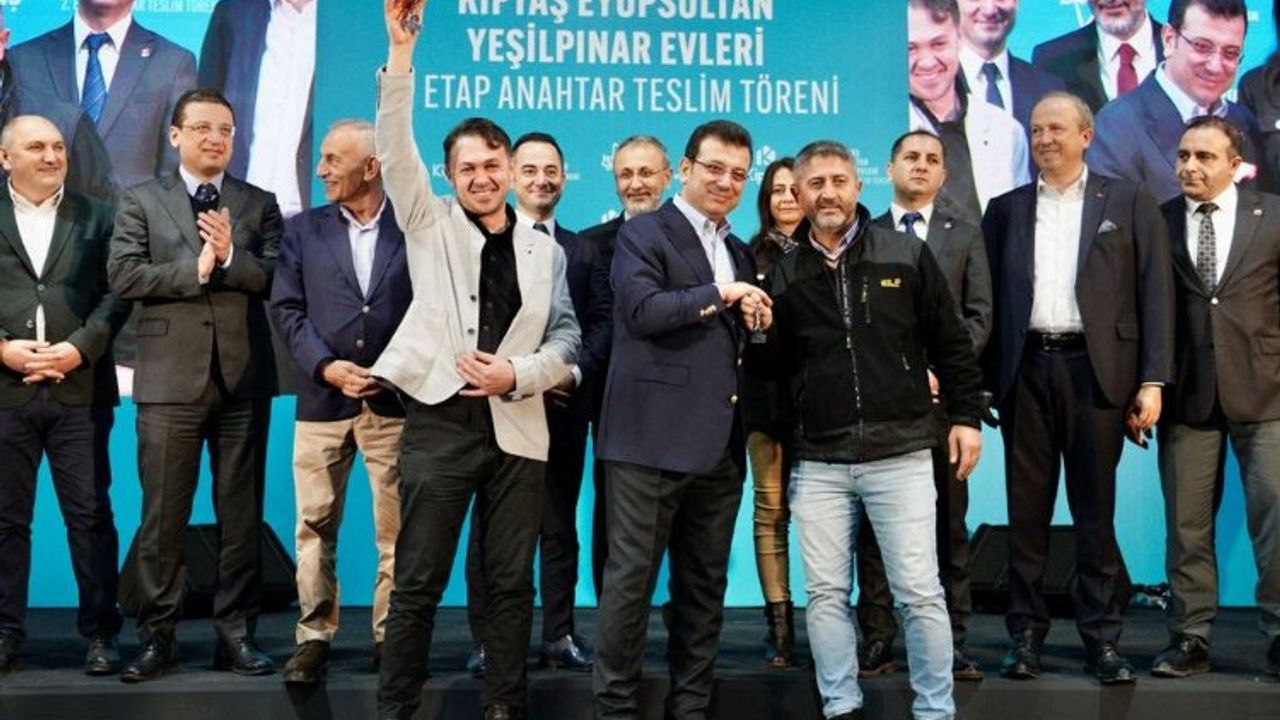 İBB Başkanı Ekrem İmamoğlu, 50 yıllık mülkiyet sorununu çözerek, 25 Mayıs 2021 tarihinde temelini attıkları, gayrimenkul sektörünün en prestijli yarışması Sign of the City Awards’ta ‘En İyi Kentsel Dönüşüm / Sağlıklaştırma Projesi’ kategorisinde ödül kazanan Eyüpsultan Yeşilpınar Evleri’nin 2. etap hak sahiplerine anahtarlarını teslim etti.İSTANBUL (İGFA) - Anahtar teslim töreninde konuşan İstanbul Büyükşehir Belediye Başkanı Ekrem İmamoğlu, “Sadece Eyüpsultan Yeşilpınar Evleri’nde geçmişte yapılanlara baktığınızda dahi halkçılarla, rantçılar arasındaki farkı çok net bir şekilde görür ve anlarsınız” diye konuştu.