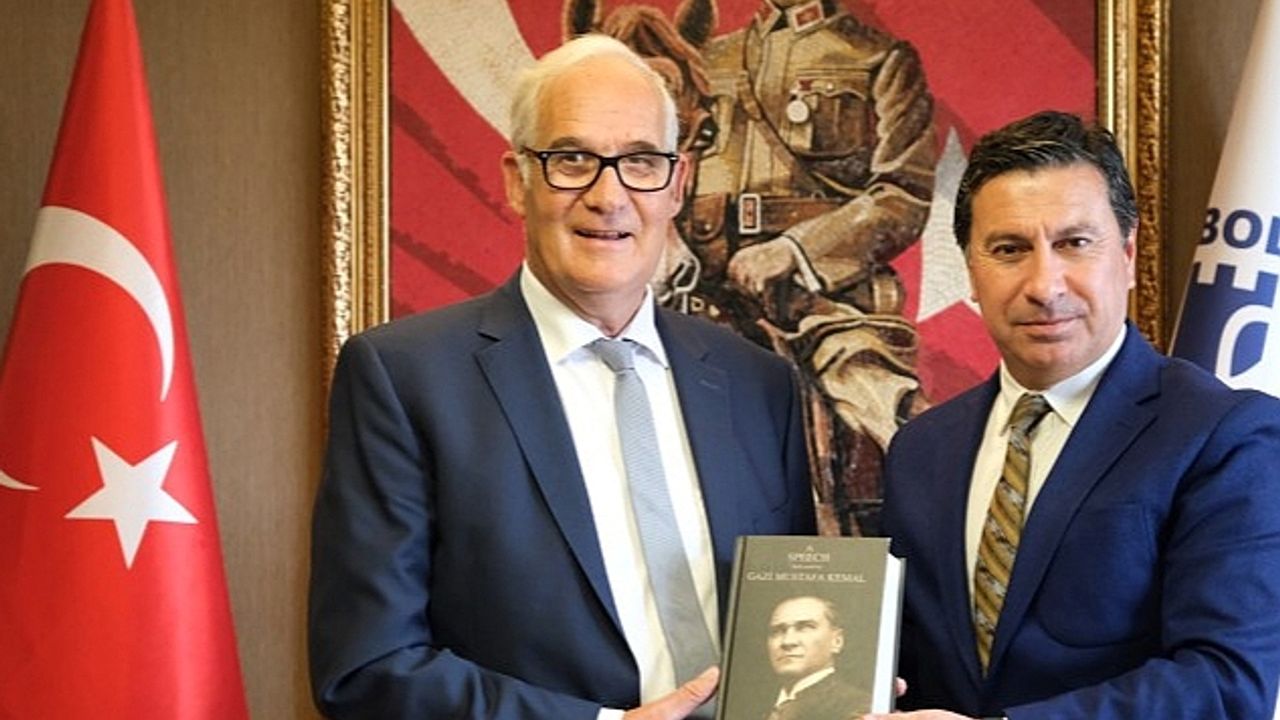 Bodrum Belediyesi Başkanlık Makamında gerçekleşen ziyarete Almanya Federal Cumhuriyeti Muğla Fahri Konsolosu Gülay Kaman Kaplan da eşlik ederken Başkan Aras, ziyarette Başkonsolos Dr. Wolter’a Bodrum tarihi ve ekonomik geçmişi hakkında bilgiler verdi.