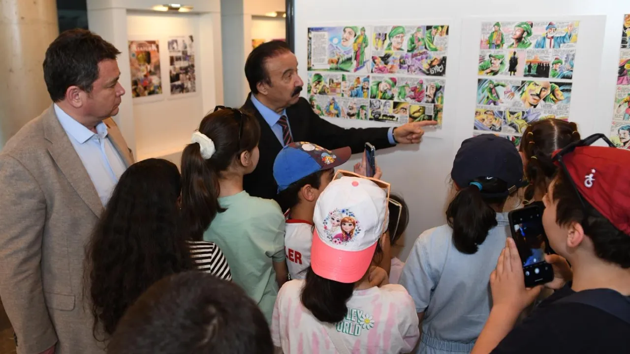 Bursa'da Osmangazi Belediyesi’nin ev sahipliğinde gerçekleşen ‘Elinde Fırça Dilinde Müzik’ adlı çizgi roman sergisi, düzenlenen tören ile çocukların ve çizgi roman severlerin beğenisine sunuldu.BURSA (İGFA) - Osmangazi Belediyesi, Kültür ve Turizm Bakanlığı sanatçısı Bahattin Atak’ın ‘Elinde Fırça Dilinde Müzik’ adlı çizgi roman sergisini, çocuklar ve çizgi roman severler ile buluşturdu.