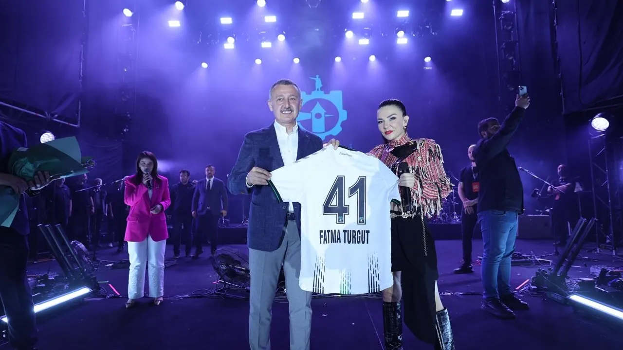 Kocaeli Büyükşehir Belediyesi tarafından yaptırılan İzmit Milli İrade Meydanı’nda düzenlenen ilk 19 Mayıs Atatürk’ü Anma, Gençlik ve Spor Bayramı kutlamalarına tarihi katılım oldu. Fatma Turgut konseriyle bu akşam yapılan finale 50 binden fazla kişi katıldı. Büyük coşku ve heyecanın yaşandığı kutlamada Kocaelispor da unutulmadı. Kocaeli Büyükşehir Belediye Başkanı Doç.Dr.Tahir Büyükakın, gençlerin sevgilisi sanatçı Fatma Turgut’a Kocaelispor forması hediye etti. Turgut, Trendyol 1.Lig Şampiyonu Kocaelispor’u sahneden, on binlerin önünde kutladı. Kocaelispor’a Süper Lig’de başarı dileğinde bulunurken, meydanı dolduranlardan büyük alkış aldı.