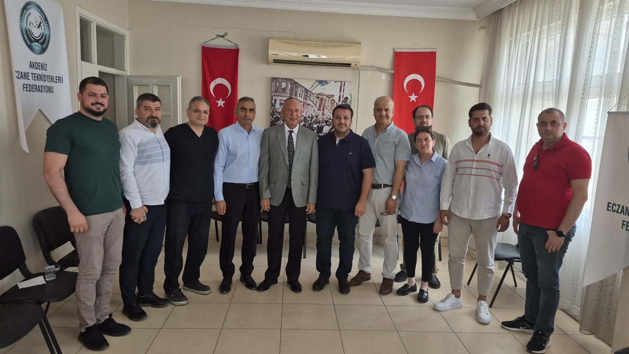 Akdeniz Eczane Teknisyenleri Federasyonu ve İskenderun Eczane Teknisyenleri Dernek Başkanı Cemal Çelik ve yönetimi kulununun hazır bulunduğu ziyarette, MÜSİAD Hatay Şube Başkanı Ahmet Akyüz ile karşılıklı sohbet edildi.