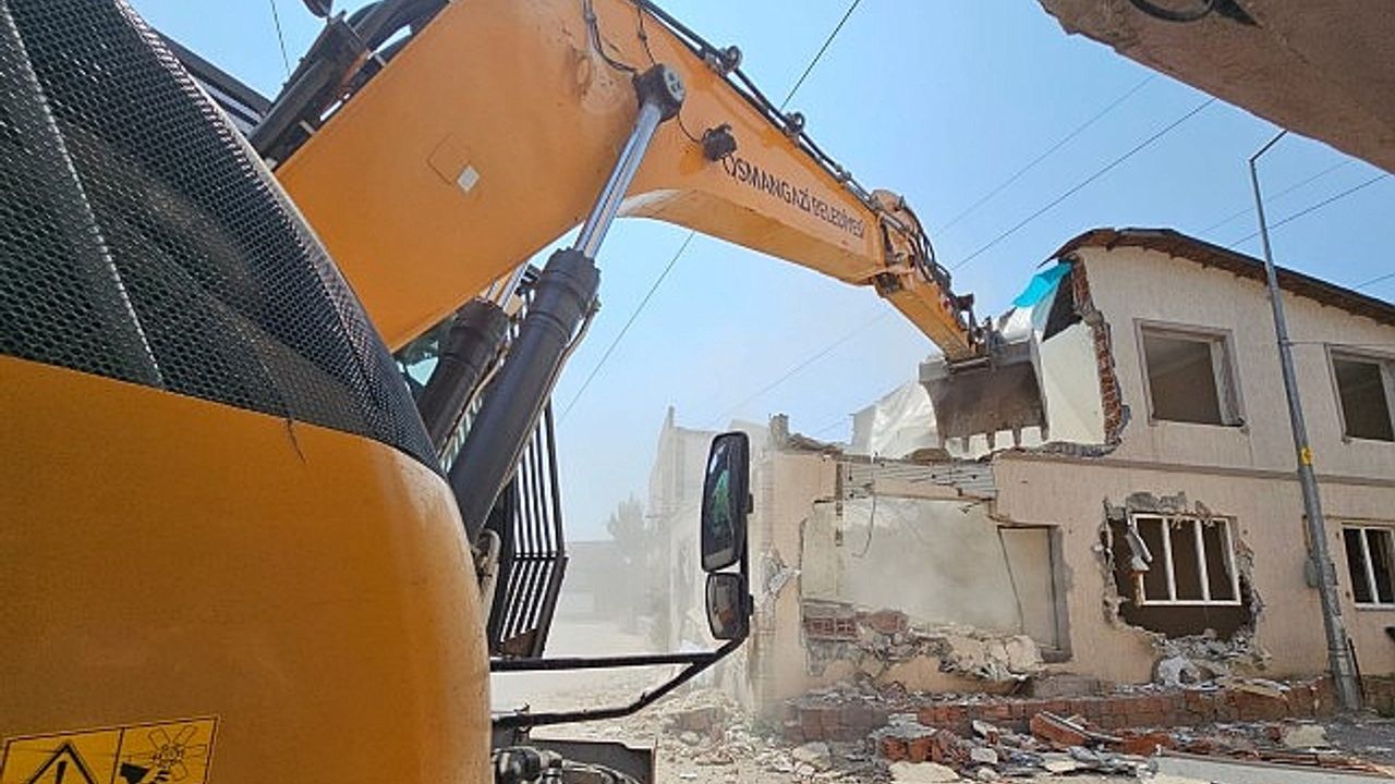 Osmangazi Belediyesi, kaçak yapılaşmaya karşı sürdürdüğü mücadele kapsamında Hamitler Mahallesi’nde imara aykırı şekilde inşa edildiği belirlenen iki katlı binayı yıktı.