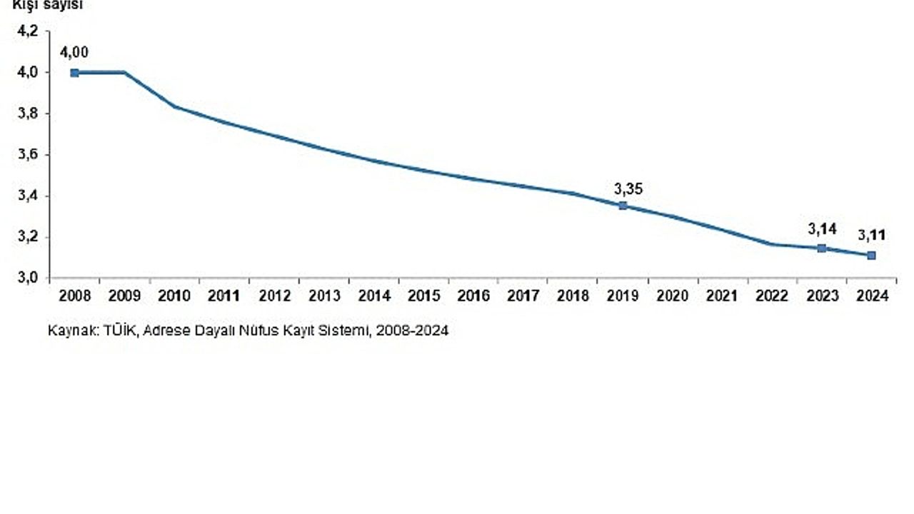Ortalama hanehalkı büyüklüğü 3,11 oldu