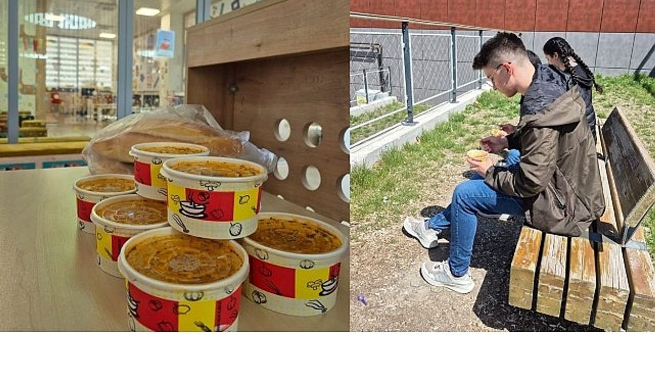 Kahramankazan Belediyesi Sağlık İşleri Müdürlüğü ekipleri, Halk Kütüphanesi’ni ziyaret eden vatandaşlara çorba ikramında bulunuyor.