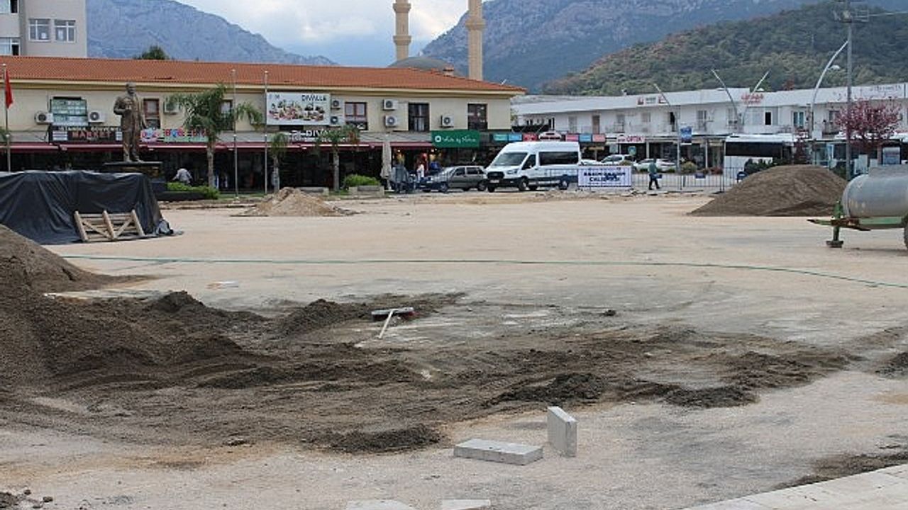 Antalya Büyükşehir Belediyesi ve Kemer Belediyesi işbirliği ile Kemer Cumhuriyet Meydanı turizm sezonuna hazırlanıyor.