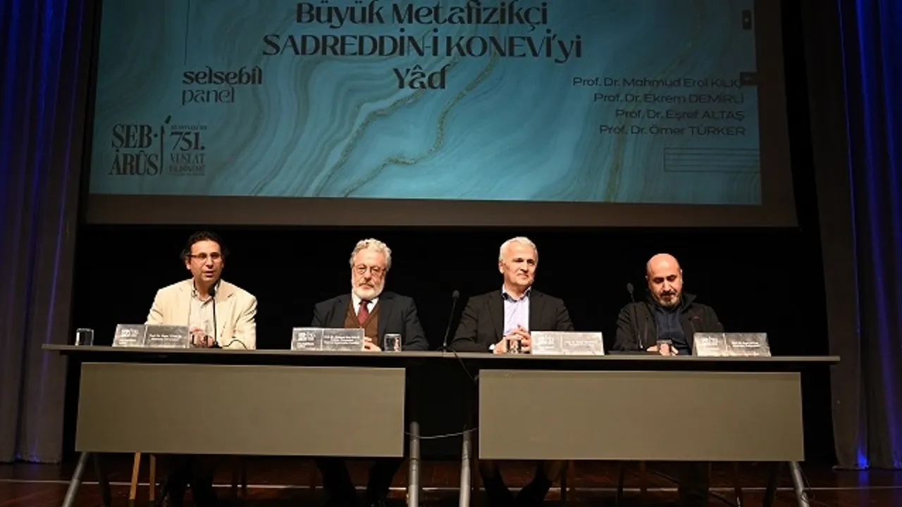 Konya Büyükşehir Belediyesi ve İl Kültür ve Turizm Müdürlüğü tarafından Hz. Mevlana’nın 751. Vuslat Yıldönümü Uluslararası Anma Törenleri kapsamında “750. Vefat Yılında Büyük Metafizikçi Sadreddin-i Konevi’yi Yad Paneli” düzenlendi.KONYA (İGFA) - Konya Büyükşehir Belediyesi Uluslararası Mevlana Kültür Merkezi’nde düzenlenen, moderatörlüğünü Prof. Dr. Mahmut Erol Kılıç’ın yaptığı; Prof. Dr. Ekrem Demirli, Prof. Dr. Eşref Altaş ve Prof. Dr. Ömer Türker’in konuk olduğu panelde konuşmacılar Konya’nın manevi büyüklerinden büyük metafizikçi Sadreddin-i Konevi’yi anlatan konuşmalar gerçekleştirdi.