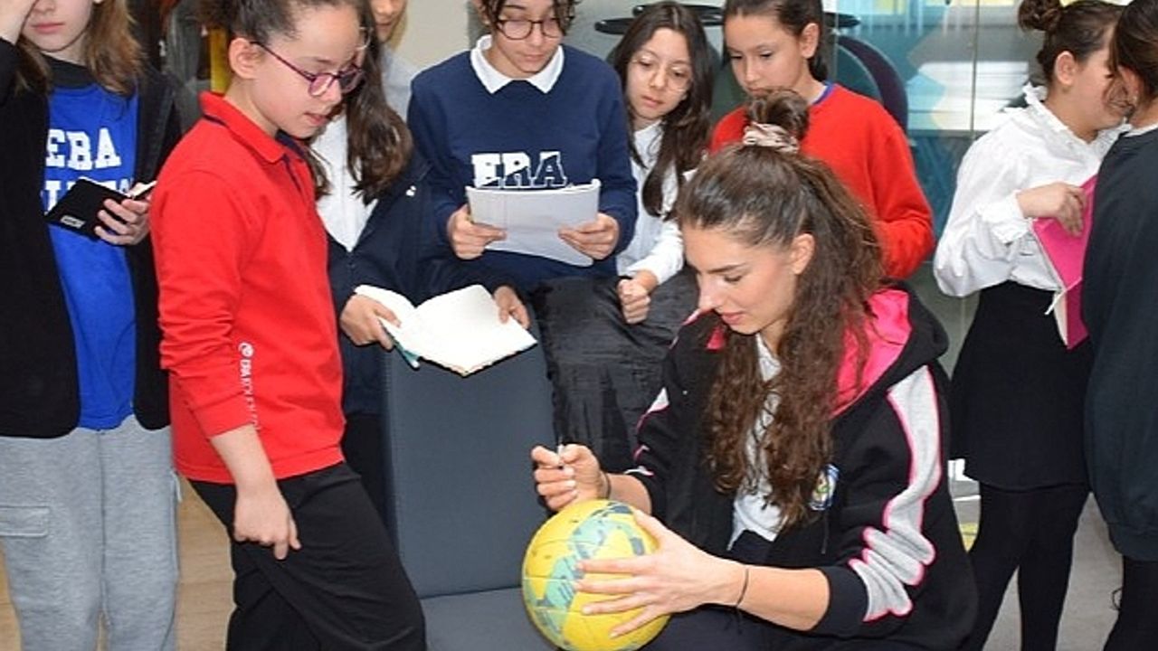 Nilüfer Belediyesi’nin, gençleri spora teşvik etmek amacıyla düzenlediği “Sporcular öğrencilerle buluşuyor” etkinliğinde, Nilüfer Belediyespor Kadın Voleybol Takımı, Era Okulları öğrencileri ile bir araya gelerek spor hayatlarındaki kariyer basamaklarını anlattı.
