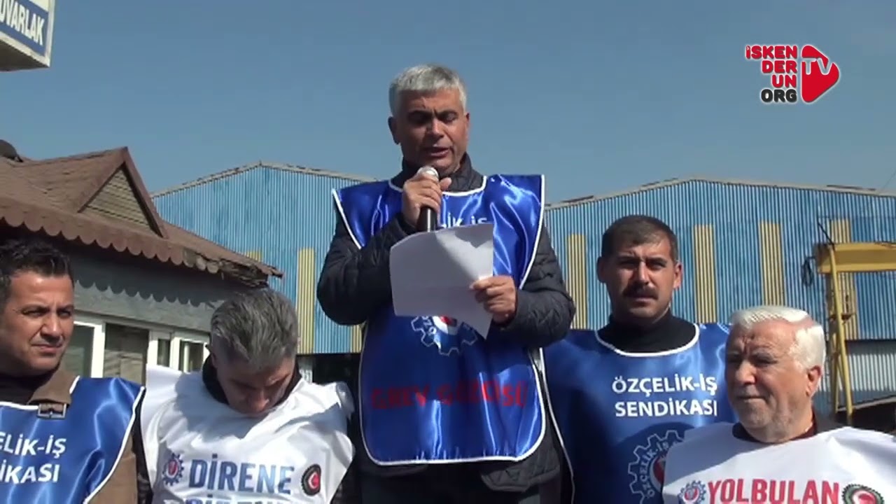 Haklarını alamadıkları gerekçesiyle greve çıkan işçiler için davullu zurnalı bir uğurlama töreni düzenlendi. Programa, Özçelik-İş Sendikası Genel Başkan Yardımcısı Bayram Altun, Şerafettin Koç ve Genel Sekreter Ahmet Çolak katıldı.
