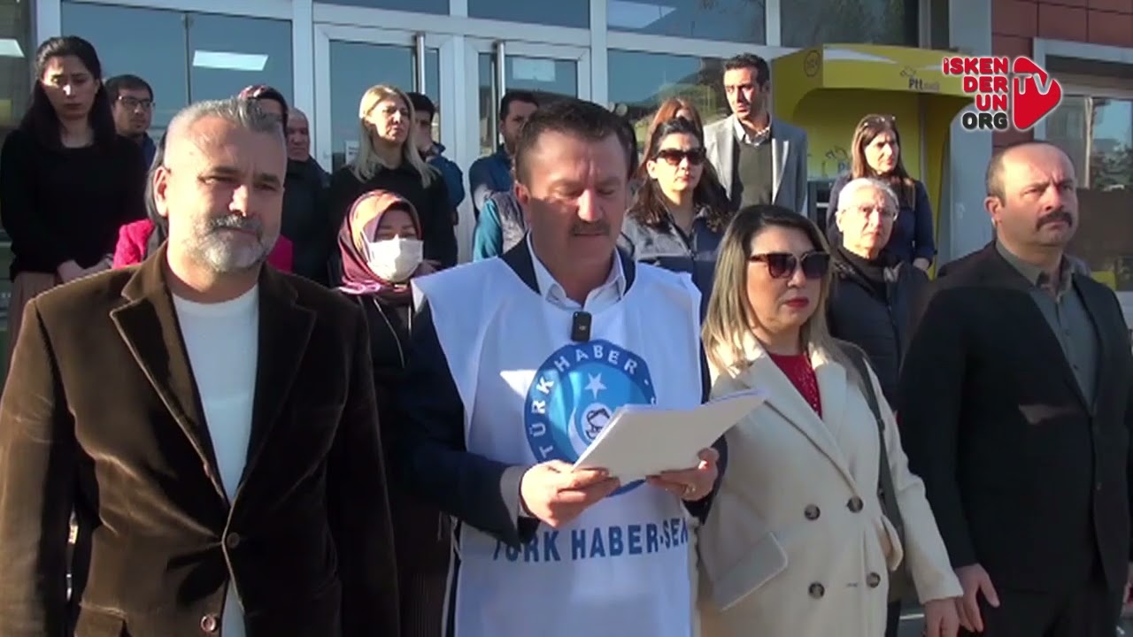 Merkez PTT binası önünde KAMU-SEN’e bağlı sendika temsilcileri, sendika yönetimi ve üyeleriyle bir basın açıklaması yapan Türk Haber Sen Şubesi Başkanı Mehmet Ali Açıl “Müdür Vekili Selim Okumuş ve Temizlik...