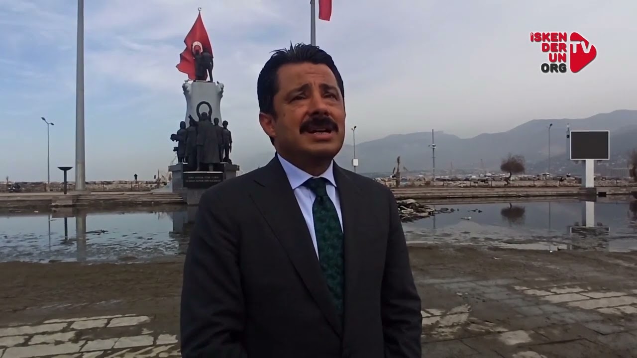 Yaşanan çökme nedeniyle uzun süredir sular altında kalan, Atatürk anıt alanında sular çekildi, İskenderun Kaymakamı Murat Sefa Demiryürek, beraberindeki İlçe Emniyet Müdürü Nevzat Güneş, İlçe Jandarma Komutanı Binbaşı Yusuf Yıldırım...