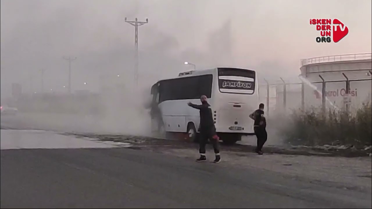 Edinilen bilgilere göre D-817 karayolunda Adana istikametinden İskenderun kent merkezi yönünde seyir halindeki işçi taşıyan bir midibüsün motor kısmından duman yükselince, sürücüsü sağa yanaşarak içeridekileri tahliye etti. Yangın çıkan minibüsün...