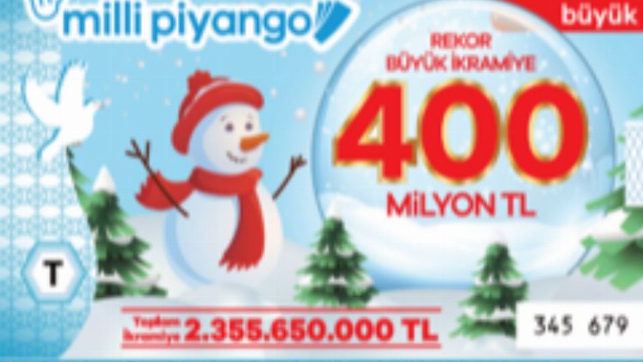 Milli Piyango yılbaşı biletleri satışa sunuldu. Bilet fiyatları çeyrek 100 TL, yarım 200 TL ve tam 400 TL olarak belirlendi. Oyunseverler, yılbaşı biletlerini gezici bayi ve sabit bayilerin yanı sıra online olarak www.millipiyangoonline.com adresinden, Milli Piyango Şans Oyunları uygulamasından ve sabit bayilerdeki oyun terminallerinden dijital bilet olarak alabilecek.