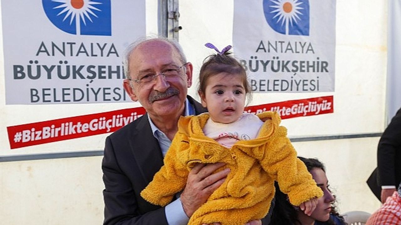 Millet İttifakı’nın 13. Cumhurbaşkanı adayı ve CHP Genel Başkanı Kemal Kılıçdaroğlu, Antalya Büyükşehir Belediyesi’nin Gaziantep Nurdağı’nda kurduğu çadır ve konteyner kenti ziyaret ederek, depremzedelerle bir araya geldi. Çalışmalar hakkında Başkan Muhittin Böcek’ten bilgi alan Kılıçdaroğlu, depremzede vatandaşlarla yemek yedi.