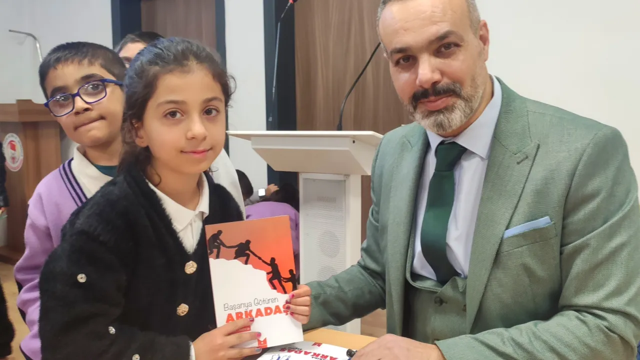 Program sonunda yazar Özmen, öğrencilere “İyilik Yolcularına Altın Hikayeler” ve Başarıda Arkadaş Seçimi” kitaplarını imzaladı.