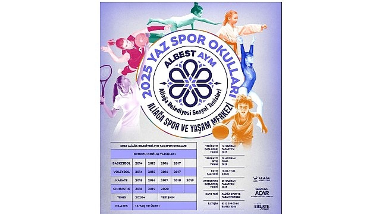 Çocukları erken yaşlardan itibaren spora yönlendirmek ve sağlıklı bireyler olarak gelişimlerine katkı sağlamak amacıyla düzenlenen Aliağa Belediyesi Yaz Spor Okulları’nda 2025 yaz dönemi kayıtları 16 Haziran Pazartesi günü başlıyor.