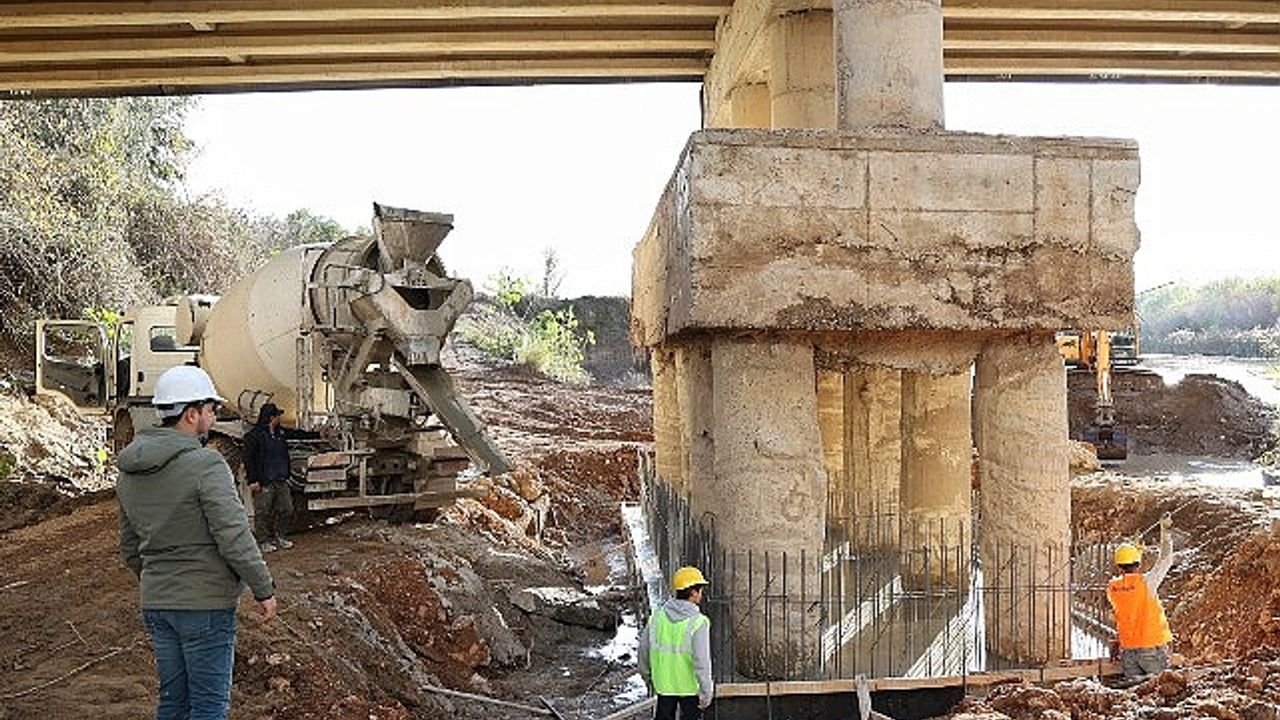 Antalya Büyükşehir Aksu Çayı köprüsünün ayağını güçlendiriyor