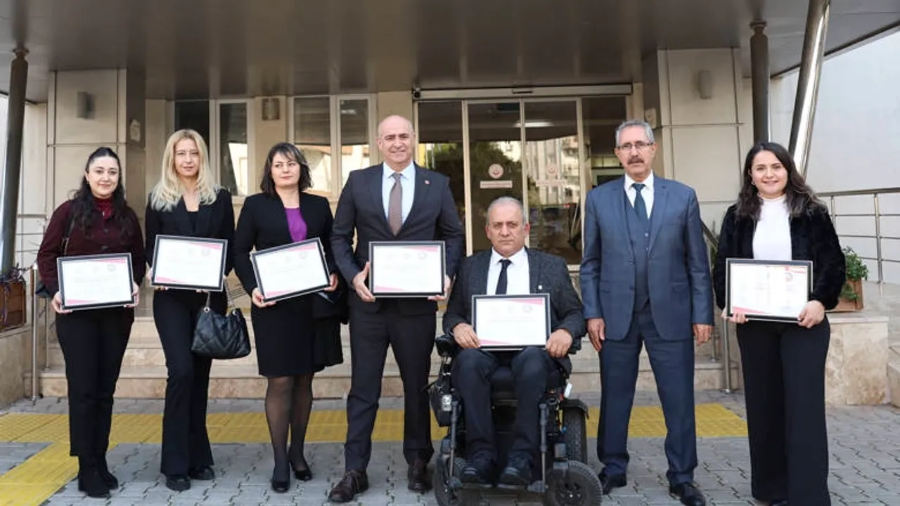 Antalya Büyükşehir Belediye Başkanı Muhitin Böcek’in ‘Engelsiz bir Antalya’ hedefiyle belediye binalarında başlattığı dönüşüm sonrası 5 merkez daha ‘Erişebilirlik Sertifikası’ almaya hak kazandı.ANTALYA (İGFA) - Antalya’da engelli ve yaşlı bireylerin kurumlara rahat, bağımsız ve güvenli ulaşabilmesi amacıyla Aile ve Sosyal Hizmetler Antalya İl Müdürlüğü tarafından yapılan denetimler sonrasında ‘Erişebilirlik Belgesesi’ almaya hak kazanan kurumlar için bir tören düzenlendi. ‘Erişebilirlik Belgesi Takdim Törenine’ Antalya Valisi Hulusi Şahin, Antalya Büyükşehir Belediyesi Başkan Vekili Erkan Çelik, Kepez Belediye Başkanı Mesut Kocagöz, Konyaaltı Belediye Başkanı Cem Kotan ve belge alan kurum temsilcileri katıldı.