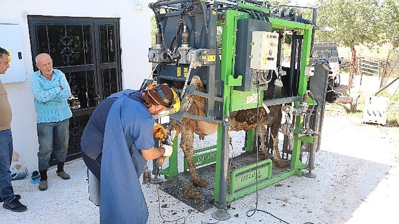 Antalya Büyükşehir Belediyesi, Döşemealtı Kevşirler Mahallesi’nde hayvancılık ile uğraşan vatandaşların daha fazla verim almalarını desteklemek amacıyla büyükbaş hayvanların tırnak bakımlarını yaptı.