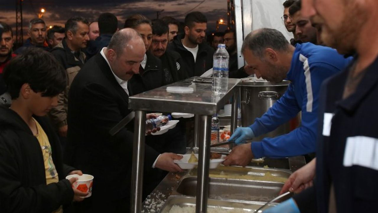 Sanayi ve Teknoloji Bakanı Mustafa Varank, Kocaeli Büyükşehir Belediyesi’nce kurulan çadır kentte depremzede vatandaşlarla birlikte orucunu açtıKOCAELİ (İGFA) - Kahramanmaraş merkezli depremlerden en çok etkilenen yerlerden olan Hatay’ın Defne ilçesinde ilk iftar Kocaeli Büyükşehir Belediyesi’nce kurulan çadır kentte yapıldı. Yaşanan deprem felaketinin ardından Ramazan ayının ilk gününde bakanlar depremzedelere eşlik etti.