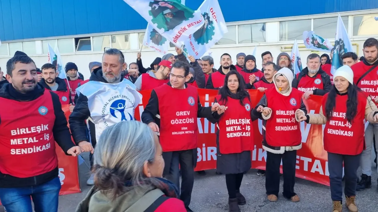 Birleşik Metal-İş Bursa Şubesi'ne bağlı işyerindeki sendikalı üyeler üretimi durdurup grevi başlattı.