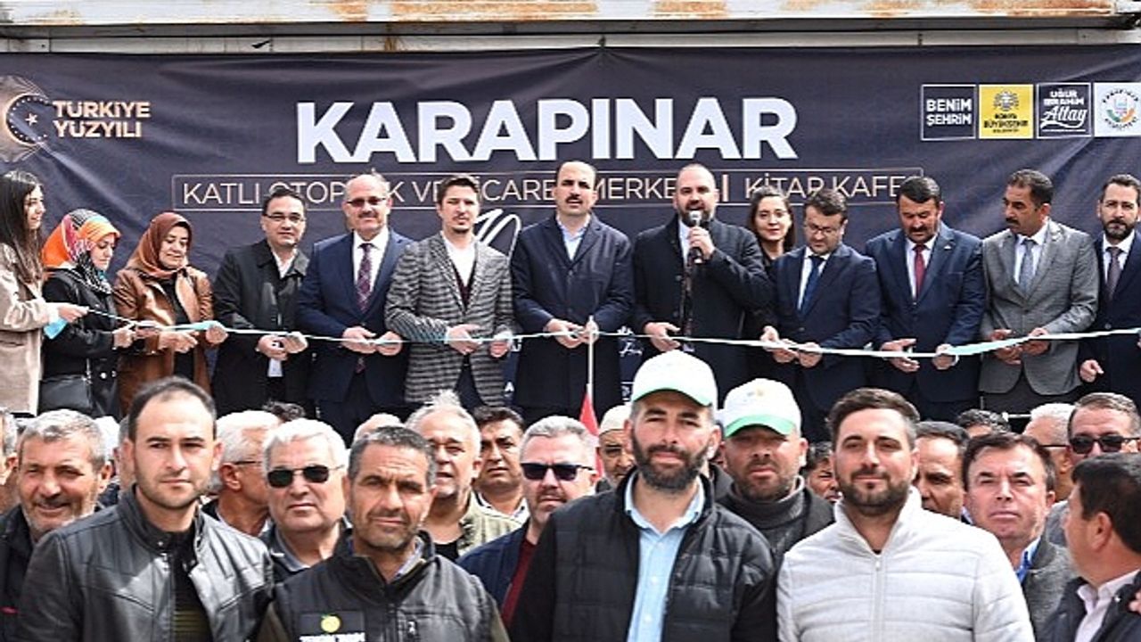 Konya Büyükşehir Belediye Başkanı Uğur İbrahim Altay, AK Parti Konya Milletvekili Selman Özboyacı ve AK Parti Konya Milletvekili Adayı Burhanettin Sevencan ile birlikte Karapınar’da esnafla ve vatandaşlarla buluşarak Büyükşehir Belediyesi tarafından ilçeye kazandırılan Ticaret Merkezi, Katlı Otopark ve Kitap Kafe’nin açılışlarını gerçekleştirdi.