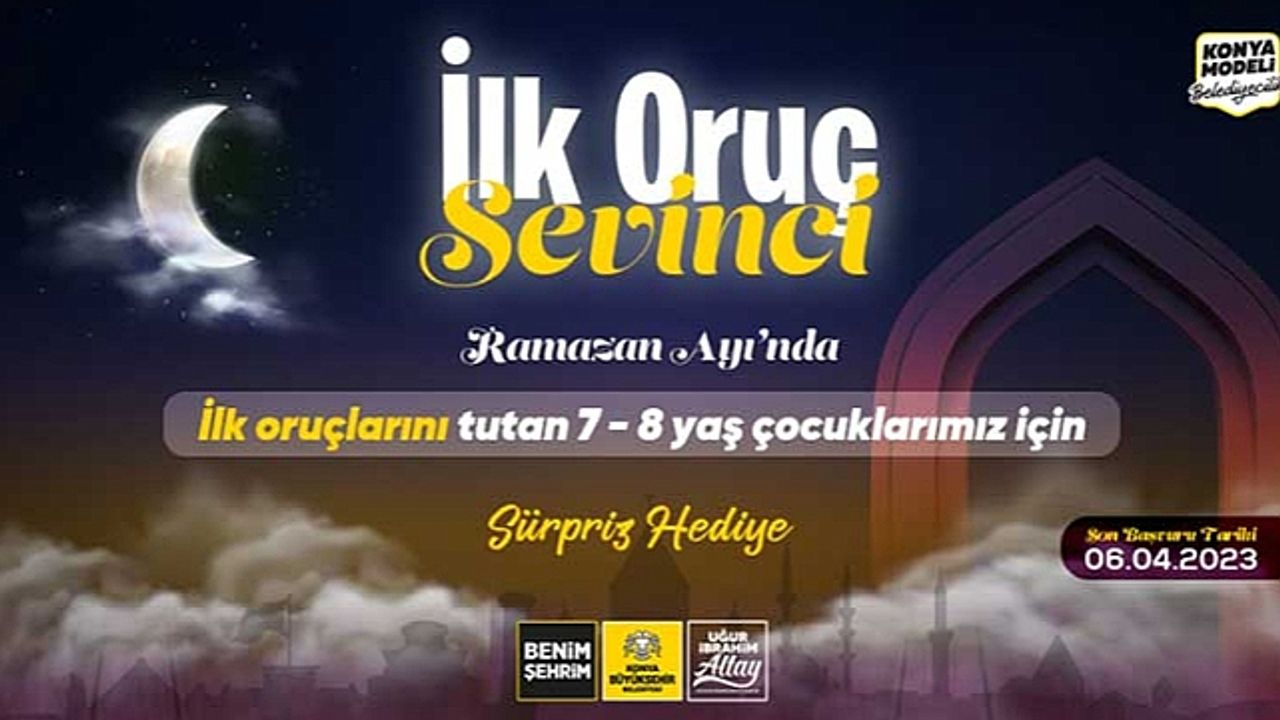 Konya Büyükşehir Belediye Başkanı Uğur İbrahim Altay, Ramazan geleneğini yaşatmak ve çocukları oruca teşvik etmek amacıyla ilk kez oruç tutan 7 ve 8 yaşındaki çocukları bu yıl da sürpriz hediyelerle sevindireceklerini açıkladı.
