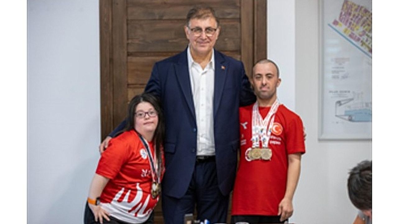 İzmir Büyükşehir Belediye Başkanı Dr. Cemil Tugay, bu yıl dünya çapında önemli başarılara imza atan İzmir Büyükşehir Belediyesi Spor Kulübü sporcuları otizmli ultra maraton yüzücüsü Tuna Tunca, ultra maraton yüzücüsü Emre Erdoğan, down sendromlu cimnastikçiler Alper Öztürk ve Selin Durgut’u konuk etti.