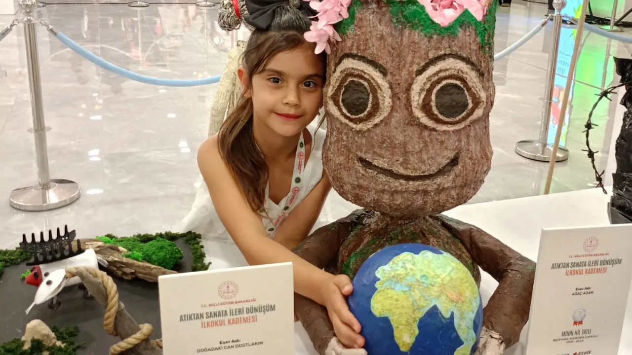 İzmir'de Buca Necip Fazıl Kısakürek İlkokulu 1. sınıf öğrencisi Mihri Nil Tatlı, Millî Eğitim Bakanlığı tarafından düzenlenen “Sıfır Atık Yarışması” Türkiye finalinde büyük bir başarıya imza attı.İZMİR (İGFA) - İzmir'in Buca ilçesinde "Atıktan Sanata İleri Dönüşüm” kategorisinde Türkiye ikincisi olan Mihri Nil Tatlı, çevreye duyarlılığı ve sanatsal yaratıcılığıyla hem jüri üyelerinin hem de katılımcıların takdirini kazandı.
