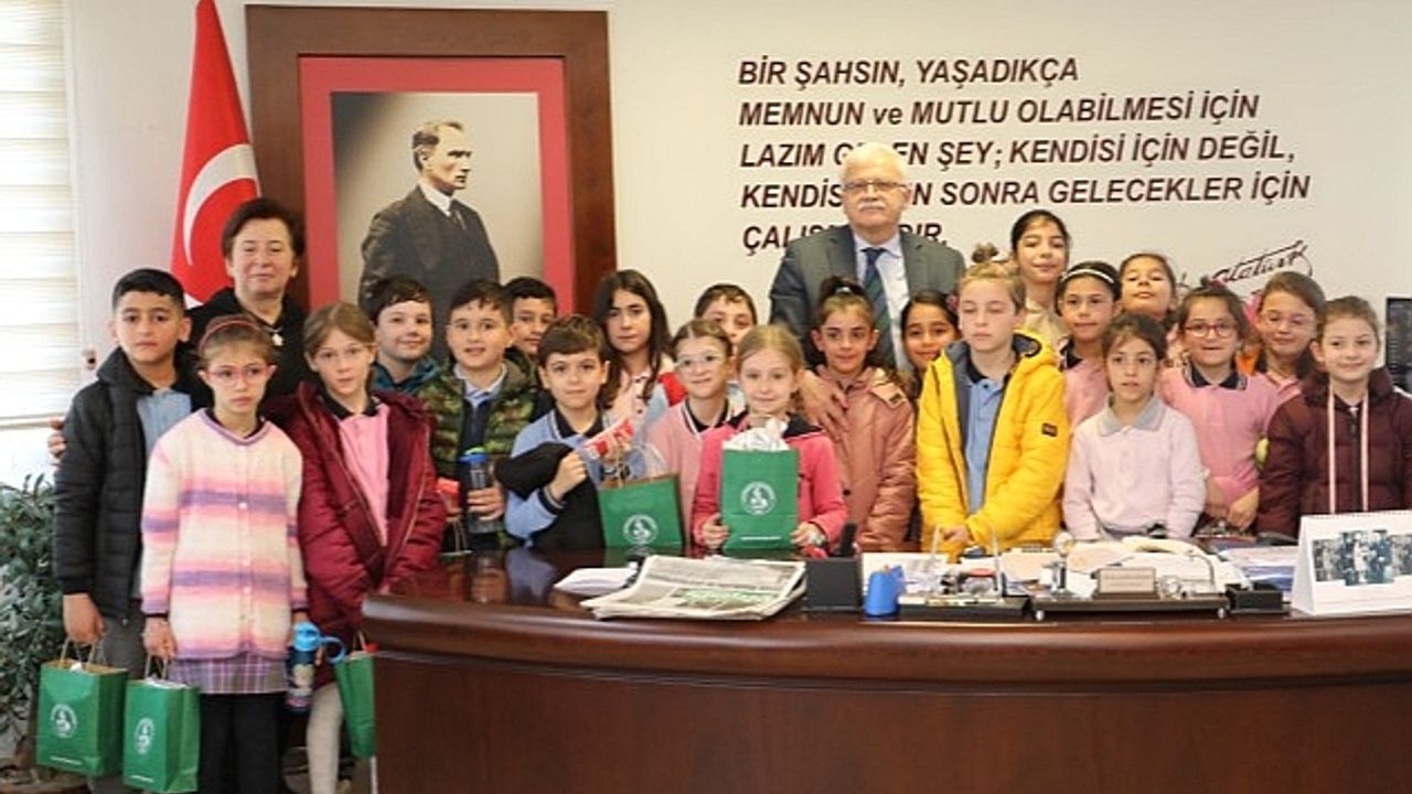 Burhaniye Belediye Başkanı Ali Kemal Deveciler, Şehit Yılmaz Kobak İlkokulu 3. Sınıf öğrencileri ve öğretmenlerini makamında ağırlayarak miniklerin sorularını cevapladı.