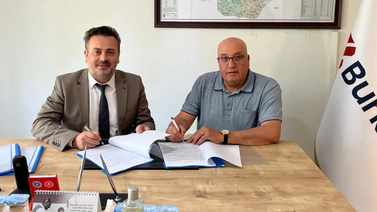 Bursa Büyükşehir Belediyesi iştiraklerinden BURKENT’te çalışan personeli ilgilendiren toplu iş sözleşmesi, BURKENT Genel Müdürü İnan Keser ve Yol-İş Sendikası Bursa 2 No’lu Şube Başkanı Durmuş Şen arasında imzalandı.BURSA (İGFA) - Bursa’nın daha yaşanabilir ve daha güvenlik bir kent olması amacıyla çalışmalarını sürdüren Büyükşehir Belediyesi, kurumda ve bağlı şirketlerde görevli personelin maaş ve özlük haklarında iyileştirmeler yapmaya devam ediyor.