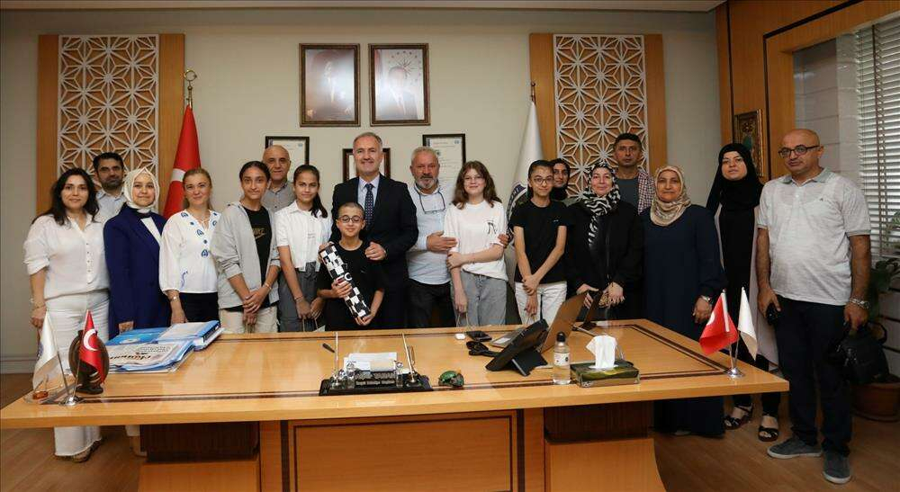 Ziyaret sırasında konuşan Belediye Başkanı Alper Taban, bu başarının öğrenci, veli ve okul üçgeninde elde edilmiş ortak bir başarı olduğuna değindi. Emeği geçen herkesi kutlayan ve şehir olarak bu başarıdan gurur duyduklarını ifade eden Alper Taban, “Çok değerli velilerimizi de kutluyorum. Anne-babalar için de güzel bir göz aydınlığı oldu bu başarılar. Kıymetli okul idareci ve öğretmenlerimizi de tebrik ediyorum. Bu başarıda büyük pay sahiplerinden biri de onlar. Öğrencilerimize çalışma metotlarını ve birtakım stratejileri öğretenler sizlersiniz. Ben öğrencilerimizi de kutluyorum, tebrik ediyorum. Çok daha güzel işler yapacaklarına eminim. Ne yaptıklarının farkındalar. Herkesin bir hedefi var ama bu öğrencilerimiz hedeflerine en çok yaklaşan oldu” dedi.