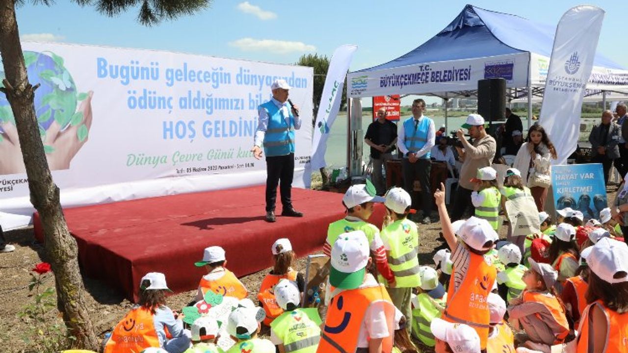 Büyükçekmece Belediyesi’nin 5 Haziran Dünya Çevre Günü kapsamında “Hedef Sıfır Atık“ sloganıyla gerçekleştirdiği farkındalık etkinliğine çevre dernekleri ve yüzlerce minik öğrenciye katıldı.İSTANBUL (İGFA) - Büyükçekmece Gölü Tepecik Çamlık mevkiinde gerçekleştirilen etkinliğe katılan çevre gönülleri ilk olarak Büyükçekmece Gölü kıyısında çevre temizliği yaptı. İstanbul’un en önemli içme suyu havzalarından olan Büyükçekmece Gölü çevresinde tonlarca atık toplanması dikkat çekti.