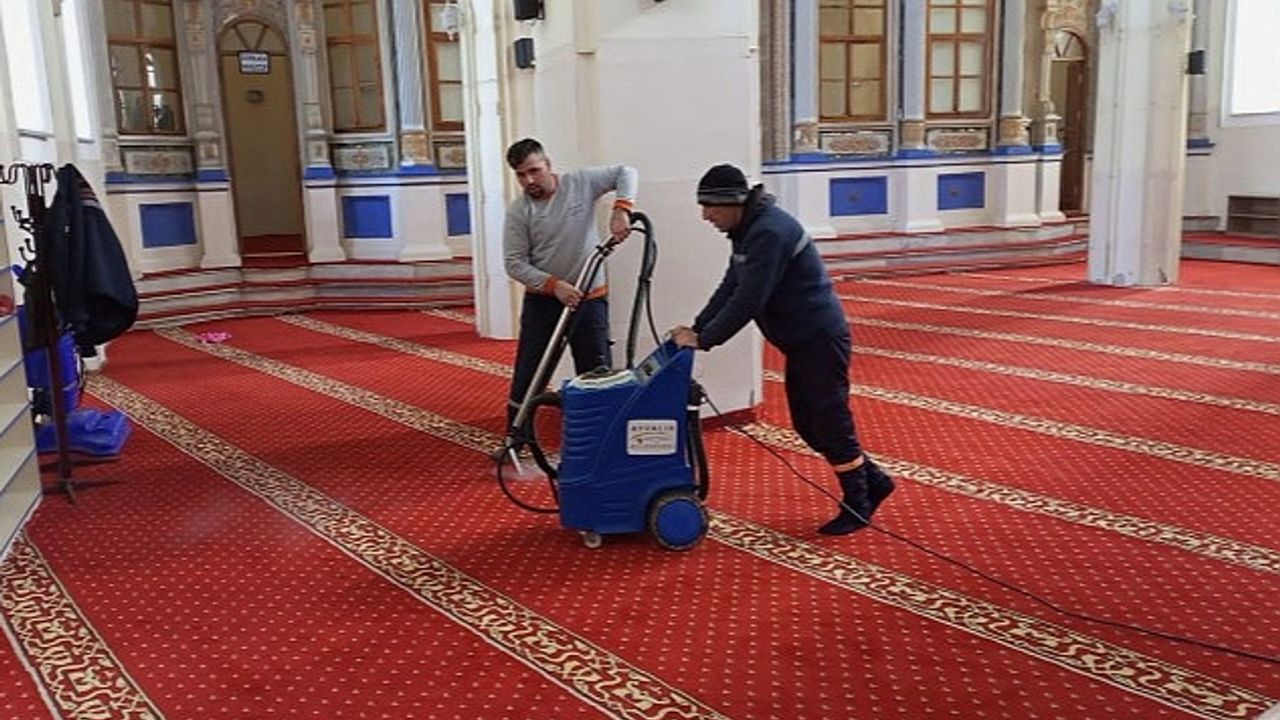 Ayvalık Belediyesi Temizlik İşleri Müdürlüğü ekipleri, Ramazan ayı öncesinde camilerde dip bucak temizlik çalışması gerçekleştirdi.
