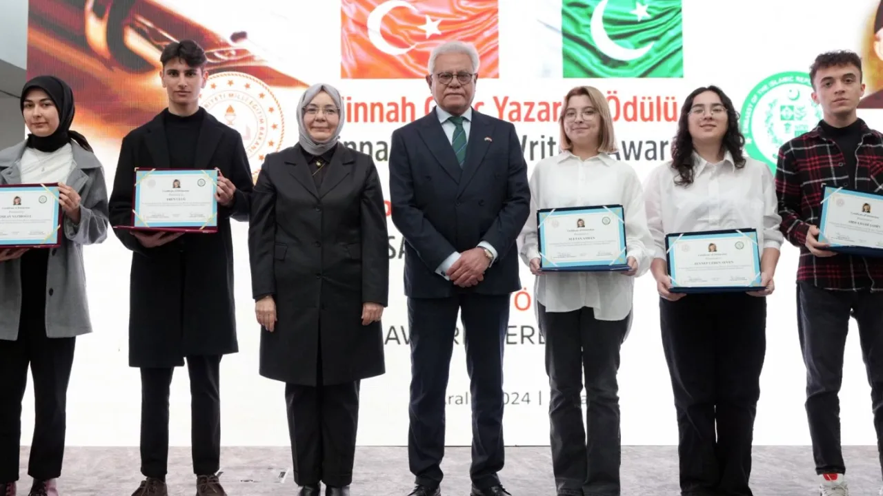 Millî Eğitim Bakanlığı ve Pakistan'ın Ankara Büyükelçiliği iş birliğinde iki ülke arasındaki ilişkileri güçlendirmek, gençlerin bilgi ve yeteneklerini geliştirmek amacıyla düzenlenen "Cinnah Genç Yazarlar Kompozisyon Yarışması"nda ödüller sahiplerini buldu.ANKARA (İGFA) - Millî Eğitim Bakanlığı Başöğretmen Toplantı Salonu'nda gerçekleştirilen Cinnah Genç Yazarlar Ödül Töreni'ne, Millî Eğitim Bakan Yardımcısı Celile Eren Ökten, Pakistan'ın Ankara Büyükelçisi Yusuf Cüneyd, bakanlık bürokratları, öğrenciler ve davetliler katıldı.