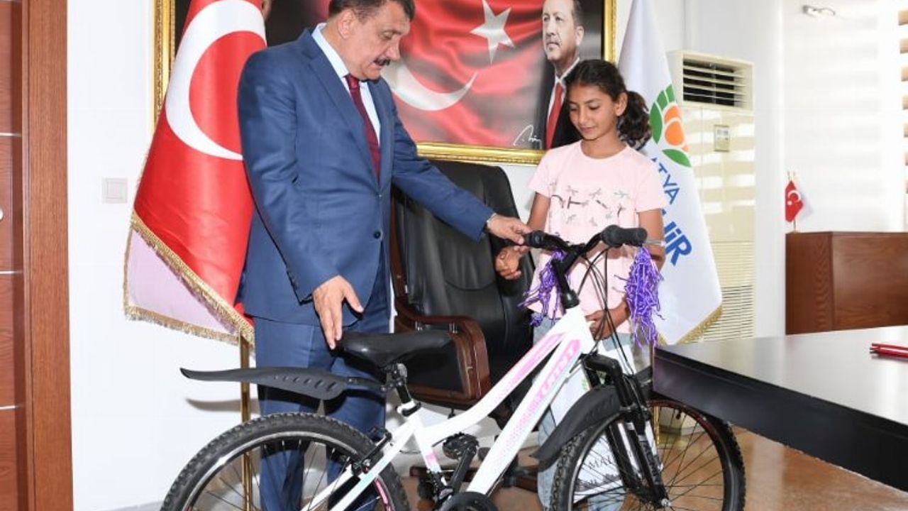 "Rabia kızımız Cumhurbaşkanımızdan bisiklet istemiş, kızımıza bisikletini takdim ediyoruz" diyen Başkan Gürkan, "Reyhan ve Meryem kızlarımızın kırtasiye malzemesine ihtiyacı varmış, kızlarımıza da kitaplarını teslim ediyoruz. Osman evladımız ve Erkan kardeşimiz de tabletlerini güzel günlerde kullansınlar” diye konuştu.