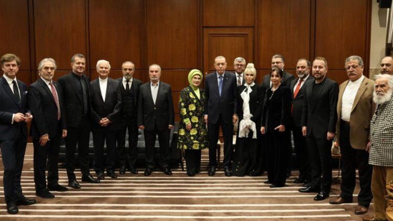 Cumhurbaşkanı Erdoğan ve eşi Emine Erdoğan, ödül alan sanatçılar ve temsilcileriyle hatıra fotoğrafı çektirdi.