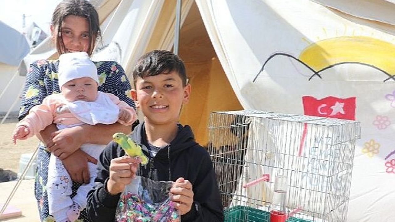 Bayram şekeri ve çikolatalarını Çadır Kentte Kocaeli Büyükşehir Belediyesi’nden alan Defneli çocuklar, büyük bir mutluluk yaşadı