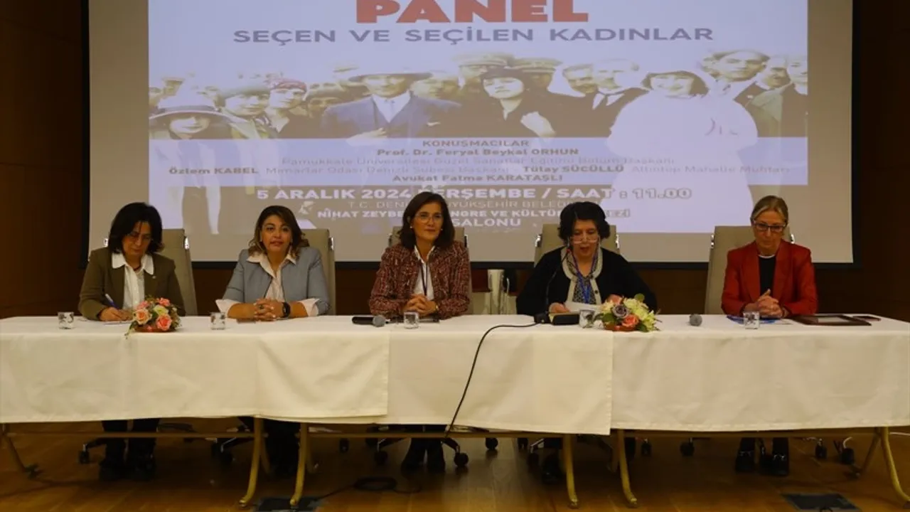 Denizli Büyükşehir Belediyesi Kent Konseyi Kadın Meclisi, 5 Aralık Türk kadınına seçme ve seçilme hakkı tanınmasının 90. yıldönümü kapsamında “Seçen ve Seçilen Kadınlar” konulu bir panel düzenledi.DENİZLİ (İGFA) - Denizli Büyükşehir Belediyesi Kent Konseyi Kadın Meclisi, 5 Aralık 1934'te Türk kadınına seçme ve seçilme hakkı tanınmasının 90. yıldönümünü bir dizi etkinlikle kutladı. Kadın Meclisi bu kapsamda Seçen ve Seçilen Kadınlar konulu bir panel düzenledi.
