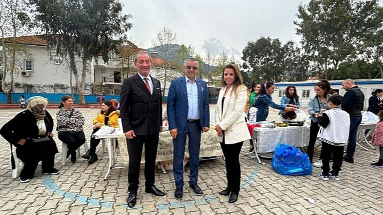 Kemer Kaymakamı Hüseyin Çam ve Kemer Belediye Başkanı Necati Topaloğlu ve İlçe Milli Eğitim Müdürü Semra Bekar, depremzedeler yararına düzenlenen kermes programına katıldı.