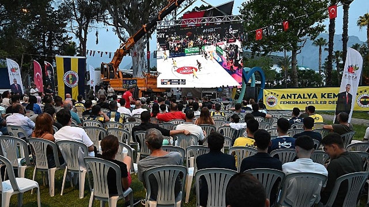 Kemer Belediyesi, Fenerbahçe Basketbol Takımının EuroLeague’de (THY Avrupa Ligi) Mocaco’yla karşılaştığı final maçı için dev ekran kurdu.