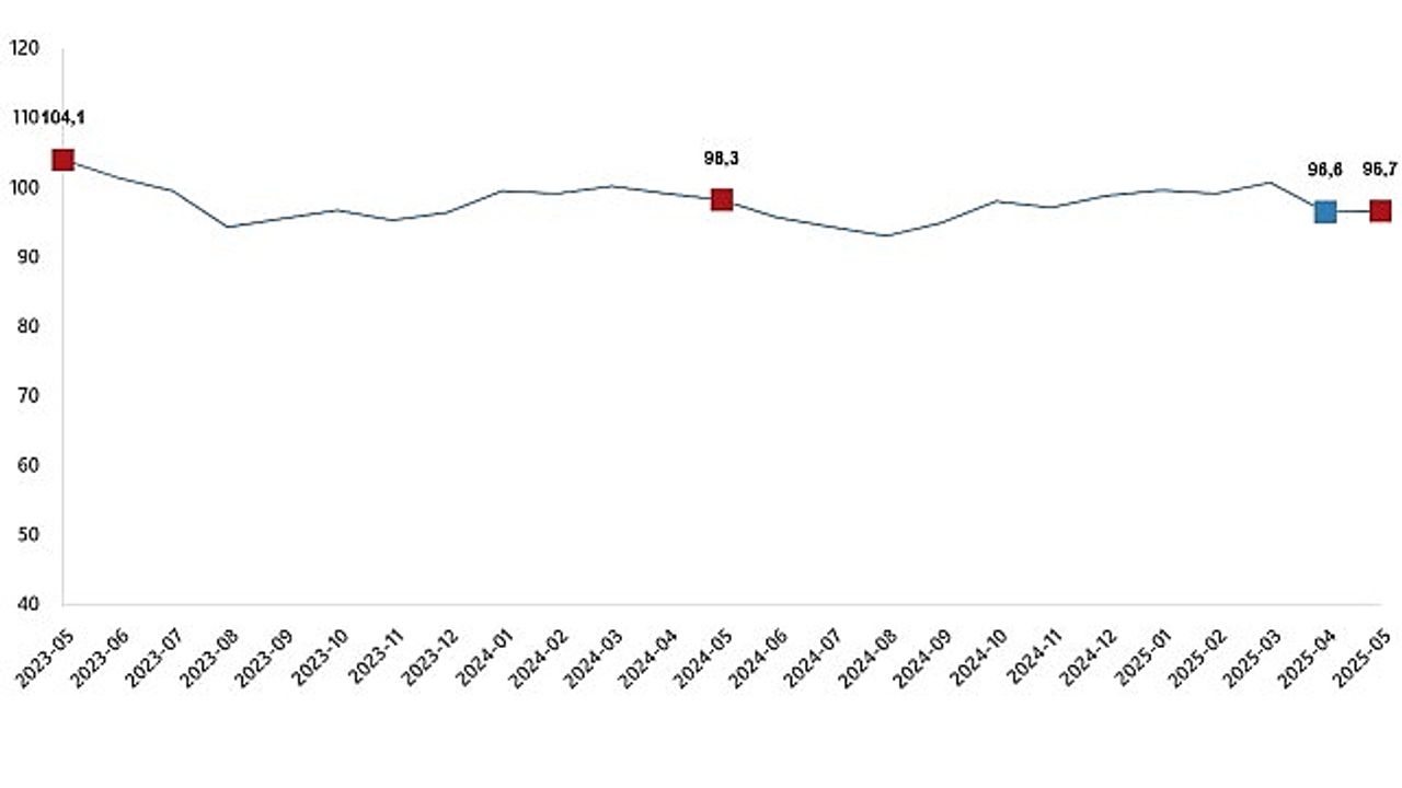 Ekonomik güven endeksi Nisan ayında 96,6 iken, Mayıs ayında %0,05 oranında artarak 96,7 değerini aldı.
