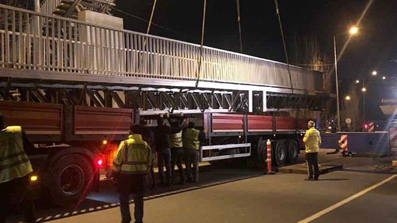 Büyükşehir, Eskihisar yolundaki mevcut yaya üst geçidini yeniliyor. Üstgeçidin ana kiriş sökümü çalışmaları trafiğe engel olmamak için gece yarısı yapıldı