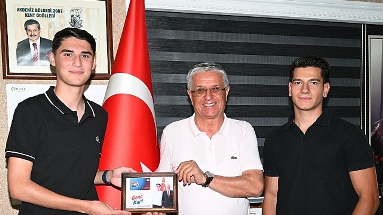 Kemer Belediyesi Gençlik Meclisi Başkanı Mehmet Yalın Erdal ve Gençlik Meclis Başkan Vekili Oğuzhan Zambakcı, Kemer Belediye Başkanı Necati Topaloğlu’nu makamında ziyaret ederek, “Genç Kart” projesi hakkında bilgi verdi.