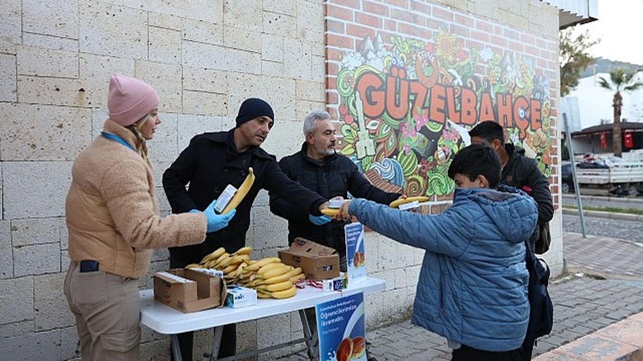 Güzelbahçe Belediyesi, Güzelbahçe’de bulunan devlet okullarının ilk ve Ortaokul öğrencilerine simit, poğaça ve süt dağıtımından sonra şimdi de kuruyemiş ve meyve dağıtımına başladı.