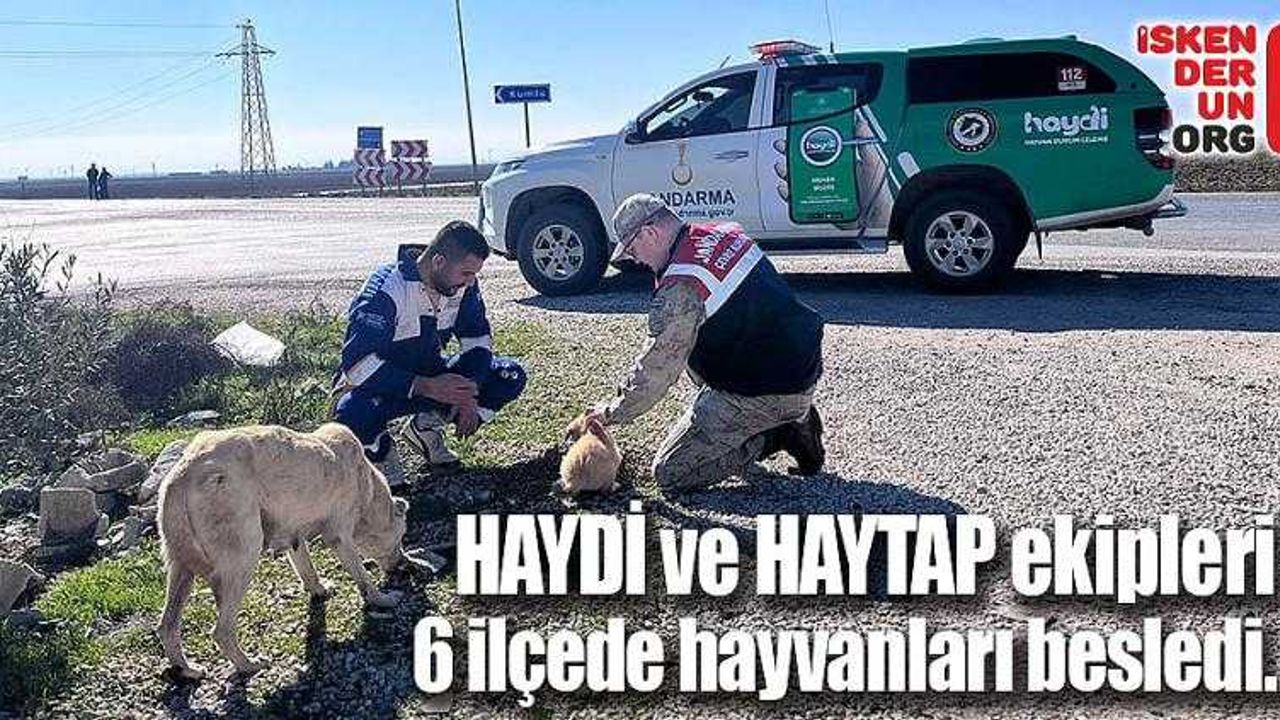 Hatay İl Jandarma Komutanlığına bağlı HAYDİ (Çevre, Doğa ve Hayvanları Koruma Tim Komutanlığı) koordinasyonda dün ekipler çalışmalarını, Kırıkhan, Hassa, Kumlu, Reyhanlı, Defne ve Antakya İlçelerinde yoğunlaştırdı. HAYTAP (Hatay Büyükşehir Belediyesi ve Hayvan Hakları Federasyonu) temsilcilerinin destek ve katılımıyla park, bahçe, orman gibi sokak hayvanlarının doğal yaşam alanları olan 40 ayrı noktaya gidilerek 250 kg. mama, yem, yiyecek ve su bırakılması sağlandı.