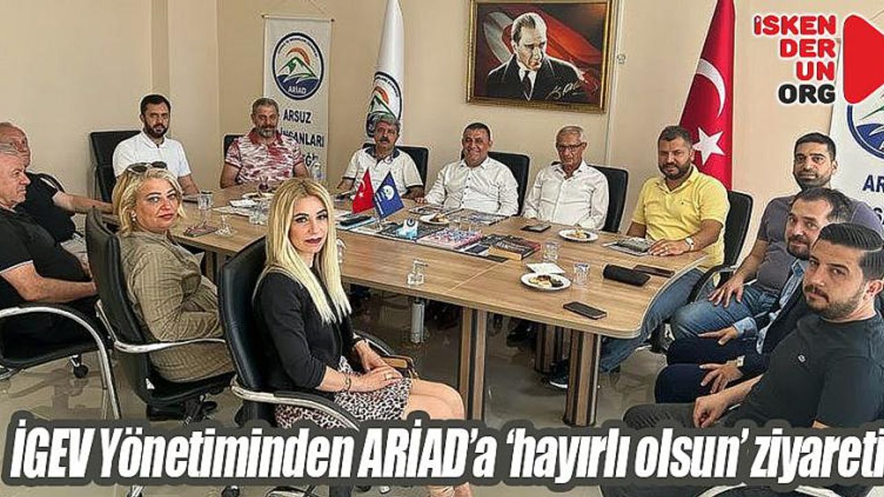 ARİAD (Arsuz İş İnsanları Derneği) Başkanı Adnan Ağır ile yeni yönetimi, İGEV (İskenderun Güney Eğitim Vakfı) Başkanı Mithat Barutçu’yu yönetim kurulu üyeleriyle dernek binasında konuk etti. İGEV Başkanı Mithat Barutçu ile yönetimi bir dönem göreve seçilen ARİAD Başkanı Adnan Ağır’la yönetim kurulu üyelerine hayırlı olsun temennisinde bulunarak başarılar diledi.