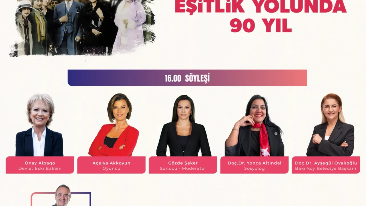 İstanbul Bakırköy Belediyesi “eşitlik yolunda 90 yıl” söyleşisi düzenliyor.İSTANBUL (İGFA) - Eşitlik anlayışıyla çalışmalarına devam eden Bakırköy Belediyesi, Türk kadınına seçme ve seçilme hakkının tanınmasının 90.yılında anlamlı bir söyleşi düzenleyecek. Bakırköy Belediye Başkanı Doç. Dr. Ayşegül Ovalıoğlu’nun ve alanında başarılı birçok kadının katılacağı söyleşi Sunay Akın’ın gerçekleştireceği anlatı ile devam edecek.