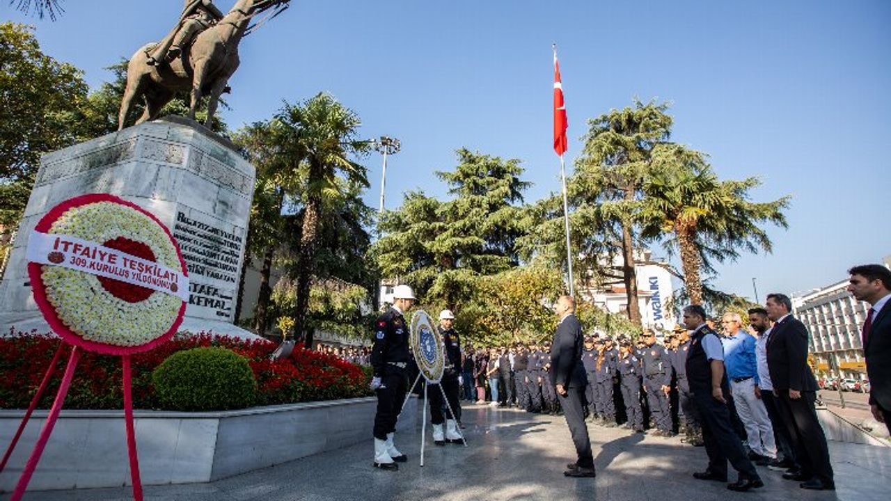 Bursa Büyükşehir Belediyesi İtfaiye Daire Başkanlığı tarafından düzenlenen törenler, Atatürk Anıtı’na çelenk sunulması ile başladı. Büyükşehir Belediyesi Başkanvekili Ali Mersin ve itfaiye erleri, Atatürk Anıtı’na çelenk sundu. Çelenk sunumunun ardından saygı duruşunda bulunuldu ve Büyükşehir Belediyesi Bandosu eşliğinde İstiklal Marşı okundu.