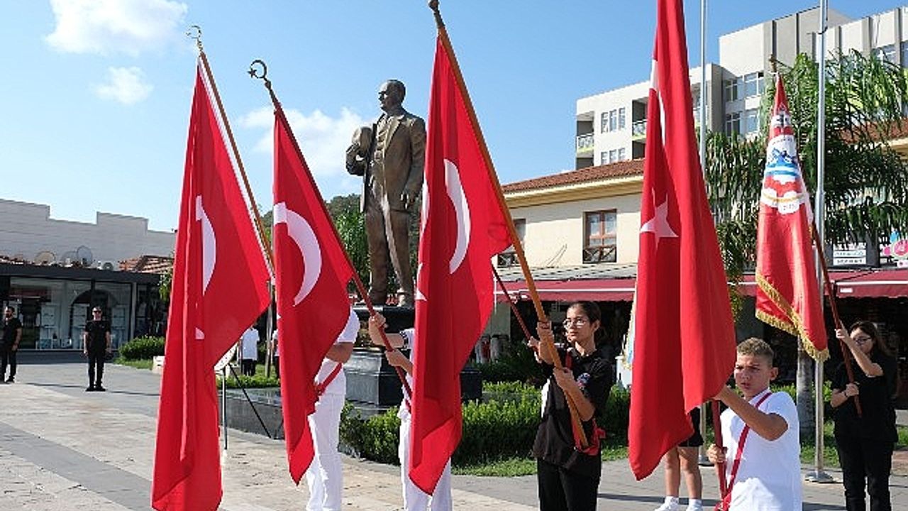 Kemer Cumhuriyet Meydanı'nda Atatürk Anıtı'na çelenk sunumuyla başlayan program, saygı duruşunda bulunulmasının ardından İstiklal Marşı'nın okunmasıyla sona erdi.