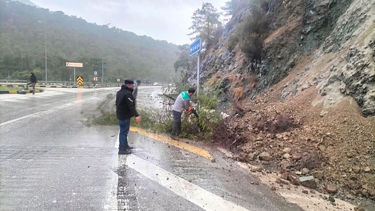 Kemer’de şiddetli yağış sonrası Değirmendere mevkisinde ufak çaplı toprak kayması meydana geldi.